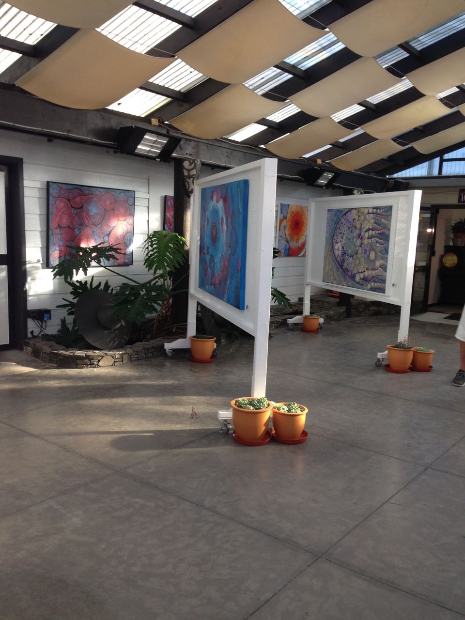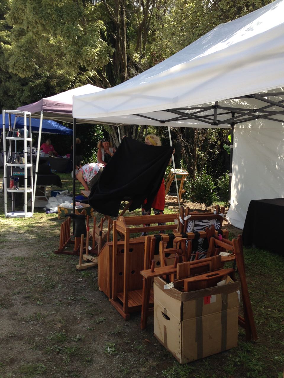 And the Atrium Gallery. With help and carpentry skills from the late Dave Foster of the Tauranga Men’s Shed – exhibitions of everything including unique superbly tailored clothing created by one of the stallholders.