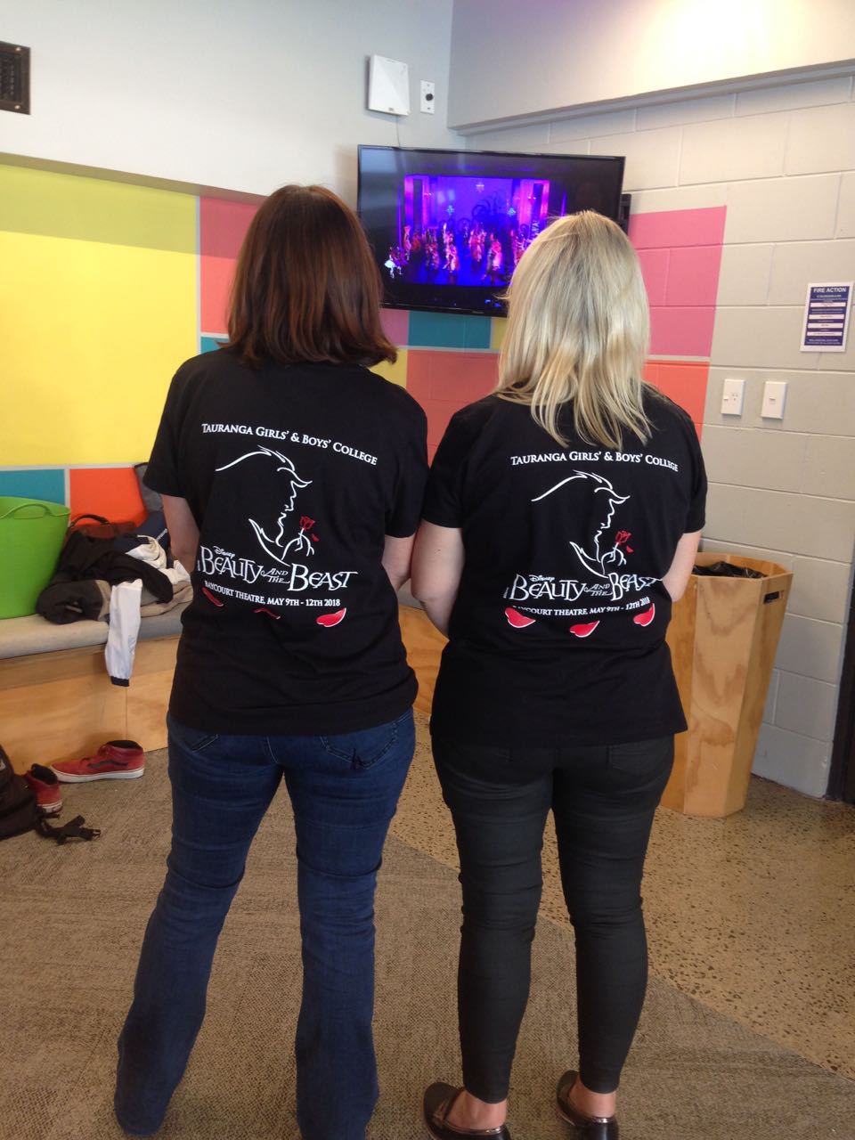 There’s a crowd on the lawn outside Baycourt as I meander down to give my submission to the Tauranga City Council Long Term Plan. There’s also beautiful singing coming from one of the lower levels of Baycourt. I can’t resist so put my head in the door. It’s the combined Tauranga Boys’ and Girls’ Colleges production of the Disney version of the classic Beauty and the Beast warming up. This is their Green Room.