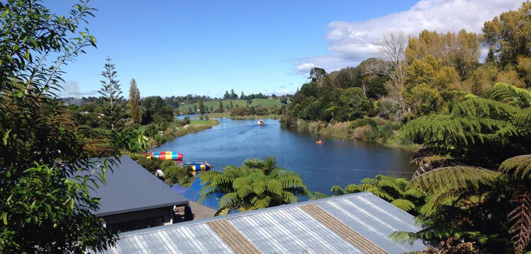 A largish group is camped by the Wairoa River – summer camping. There’s a long, white open-sided tented roof over the dining area. Tents of various shapes, sizes and colours fringe the flat, grassed riverside area. There’s a new picnic table and benches cemented onto a concrete slab a river’s edge.