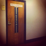 Inside there is no evidence of age or decay – there’s bright new carpet and bright cheerful lighting. But at the far end of the foyer at “box office and ice cream shop” the mirrorred panel looks decidedly art deco with its acid etched stretching female figure.