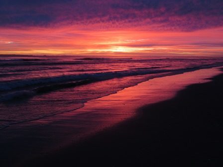 The tidal currents granting more beach with each wave, was cold. The sun itself lit the horizon at 6:32am. A container ship was barely visible through the sea mist. Sea lettuce, part of the mixed salad Ulva, scattered on the beach. Sand poured through fish heads as the tide streamed in and out