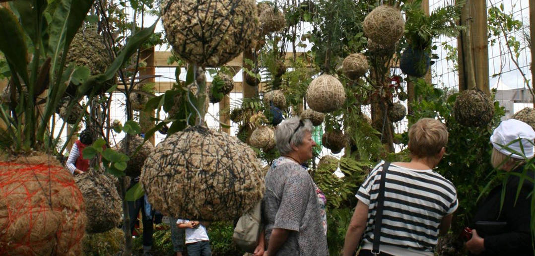 Despite the large, appropriately graphiced and coloured signage I still manage to turn off one roundabout too soon – I think the memory of my winter $2. toll has made me excessively cautious about driving along this highway! I go round and round the round about and turnoff again (clearly indicated) and I’m there at the free public area of the 2014 Garden & Art Festival, Tauranga. I’m actually excited I’ve managed to get here and then, like a surprise walnut on an afghan, I find the hardworking Festival Director John Beech, is leading the on site parking team.