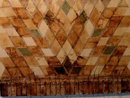 When I saw Deborah Forkert’s exhibition, Remains of the Day, an entirely new meaning, came to the fore. Her remains are in fact, a visual representation: extension of time. The primary media is teabags that been emptied, dried and the paper sewn together and reworked into unique designs. Many are painted and decorated with interruptions reflecting the past, present, and by association, our future.
