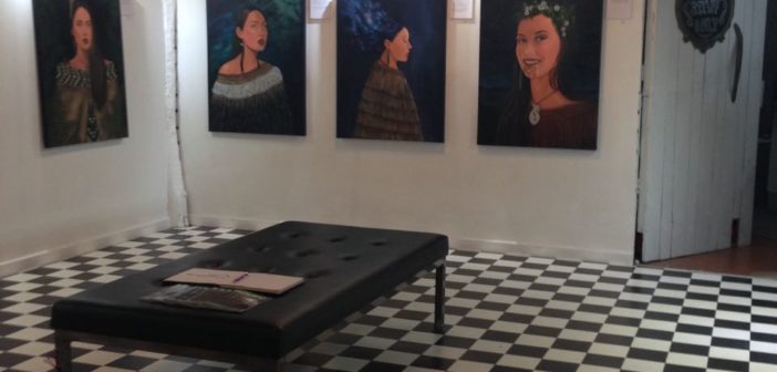 I’ve been coming to these events regularly now and know that, unless I wish to join the scrum to buy a painting (yes that’s what often happens as the works are so amazing) I’m better to come back another day.   Tonight however I do something I’ve never done before – I move the curtain and photograph part of Michelle Estall’s wonderful exhibition “Ruahine” I capture the artist’s statement for Mumu Moore