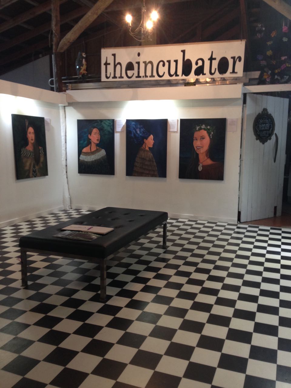 The evening’s programme is opened by the Tauranga Hospital Choir group Vocal Chords  (it’s formally called the BOP Health Providers Choir)  – they are wonderful and talented and my enthusiasm for their performance is only curtailed by the cold seeping into my feet.  I used to find it hard trying to explain what participating in a kapa haka group meant to me – I’d have no difficulty talking about this with the Pakeha members of Te Hauora a Toi – the Bay of Plenty District Health Board Kapa Haka group, led by Te Pona Martin.   (There is a live video of their performance filmed by the inimitable Lynette Fisher of The Incubator on the ARTbop facebook page).   They finalise a wonderful performance with the district anthem “Tauranga Moana” and He Honore – I cannot stop myself.  On the tarseal in the semi-dark I join in.   I’m so absorbed in the performance I don’t even see I’m standing next to the team from Creative Bay of Plenty – on realising this I manage to hit up their General Manager about funding options for an original  music band.  The exhibitions are formally opened and the participating artists speak.  Then the queues form for the “kai” and the galleries – where did all these people come from….the Incubator Gallery is packed out as is The People’s Gallery a step away into the Village.