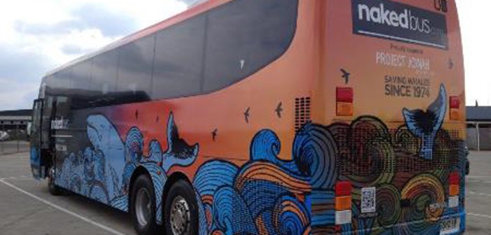 Naked Buses are generally just that – like plain packets or brown paper bags. But this monster mover has been painted to advertise Project Jonah, an environmental charity and whale initiative supported by the Naked Bus operators. It’s beautiful livery workmanship and the colours are vibrant and stunning – a total eyecatcher with a whale-sized qr code!