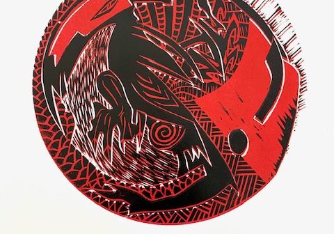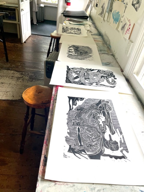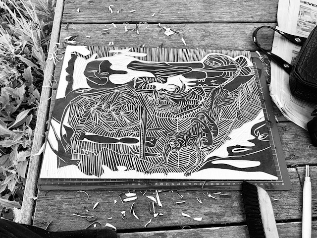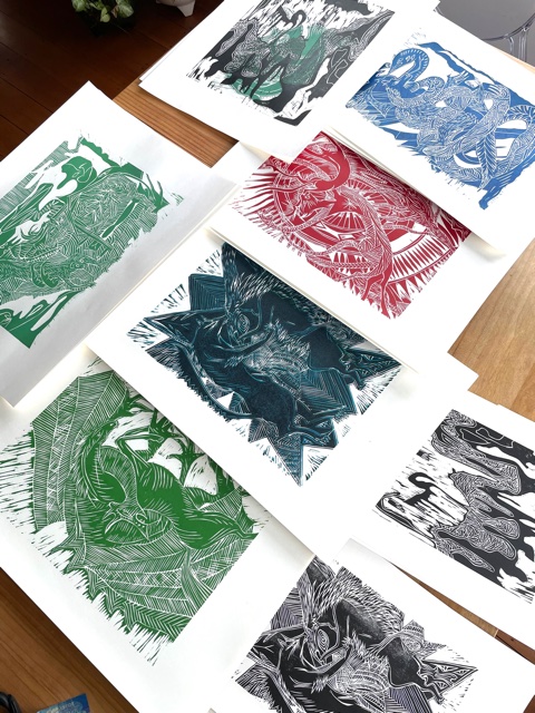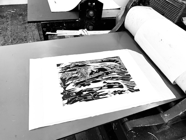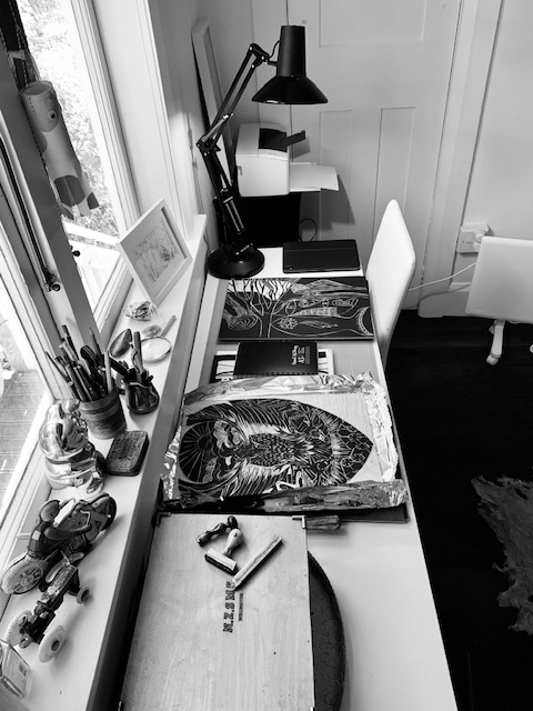 2.What is your field of creative endeavour? My medium of choice is wood block prints. My printmaker journey began with intaglio, however I transitioned to wood, being attracted to its raw, textural aesthetic. I enjoy the sensation of carving out my work, it is a long process that can become meditative and exhilarating in equal measure. I love the ‘big reveal’ when I spend the day in the print room pulling prints through the press. The interplay between positive and negative space and its reversal is endlessly intriguing.