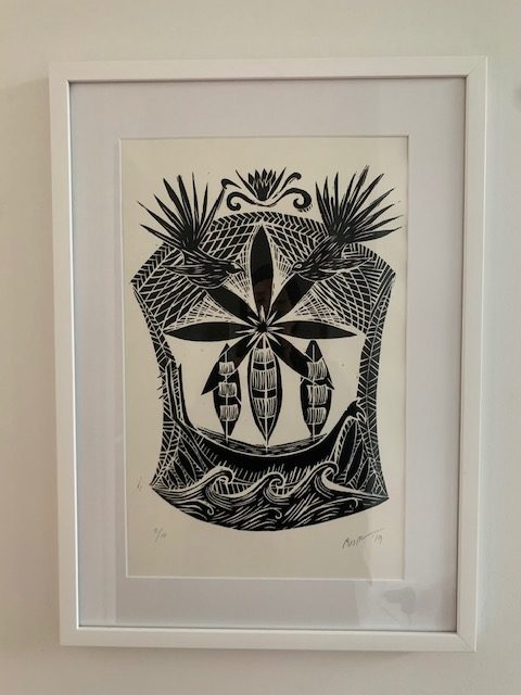 6. My creative background. Art and writing and performing were the daily soup of my formative years. I am the daughter of an art teacher/poet and writer/translator. I studied printmaking at Elam with my idol Jenny Dolozel before being seduced into studying anthropology and design at Victoria, Otago and finally Auckland universities. I started creating new human beings in my 20’s and my artistic endeavours took a back seat as my eldest son’s father honed his artistic skills in the area of Whakairo.