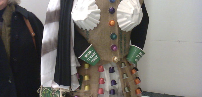 Speech completed we take a look at some of the winners – it’s the first time I’ve seen the trash to fash creations up close. They range from the wonderfully wearable “hip hop” outfil entered by Zoe Beck seen here with other vibrant out there creations