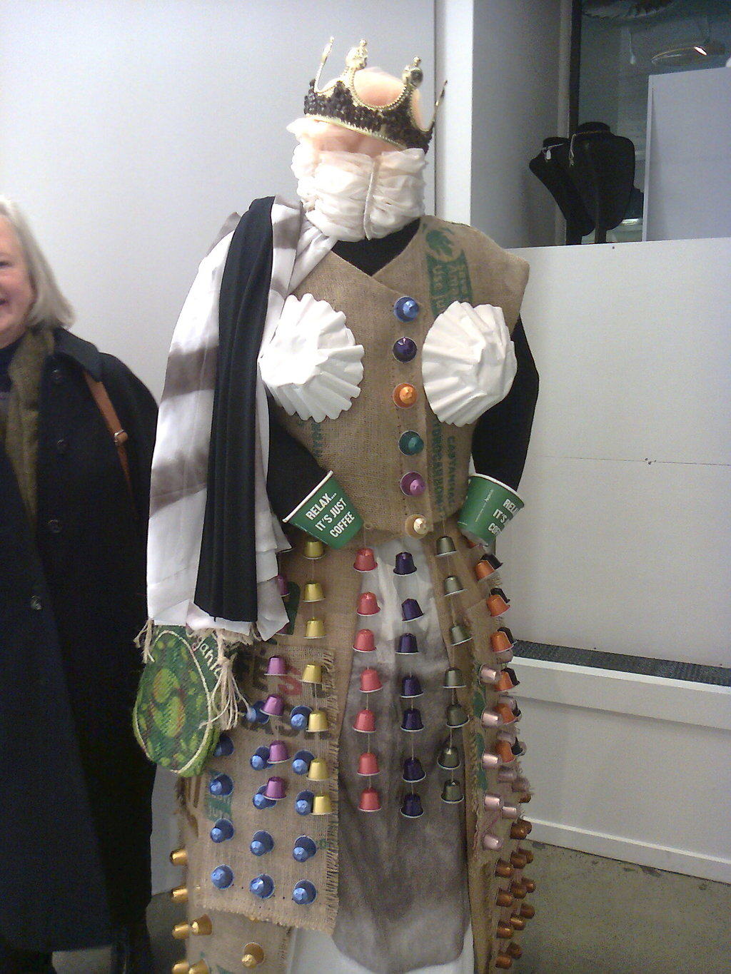 In the front window of the Gallery is the wacky and whimsical entry by Lindsay Bluck of Tauranga. Coffee! The pictures tell it all. Great going Lindsay.