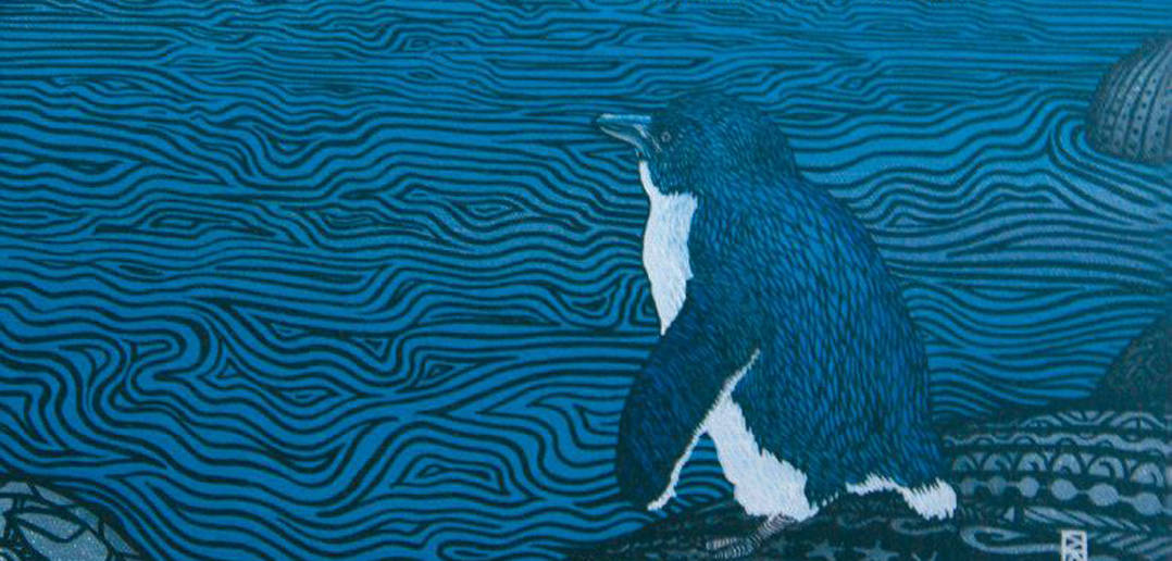 Local artist Elliot Mason’s work “Little Blue Penguin” features in both matt and high-shine finishes on the front cover. It’s appropriate that Elliot’s work is featured – he was an immediate participant in the practical efforts to clean up the foreshore mess from the wreck. Debbie immediately tells me that she has had a great deal of support from other creatives, like Elliot, who have allowed her to use their images without charge. She also comments on the skill of her book designer, Sarah Elworthy, whose opinion “she really respects.”