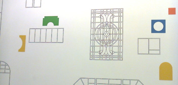 And there are the stained glass windows outlined on the Atrium wall. There are shapes and letters – they are attached not painted directly on to the wall.