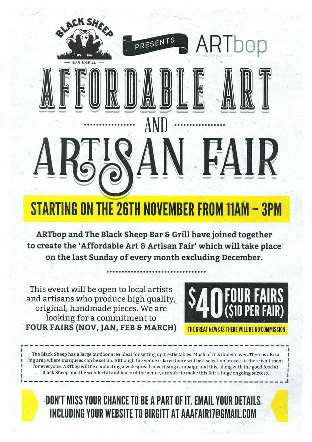 Katikati artist, ARTbop contributor and Affordable Art & Artisan Fair project organiser Birgitt Shannon has produced this great video to promote the Fair. Hope you can all get along to support us at the Black Sheep Bar & Grill, Corner Plummers Point Road and State Highway 2, Whakamarama on the 26th November 2017. Loads of parking, great coffee, food and a wonderful area in which to present and sell art and artisan products. Not too late to have an exhibition area. This is an ongoing event and will be at the Black Sheep every last Sunday of the month recommencing in January 2018.